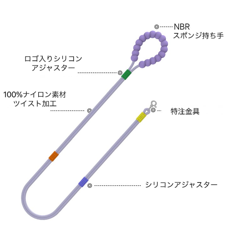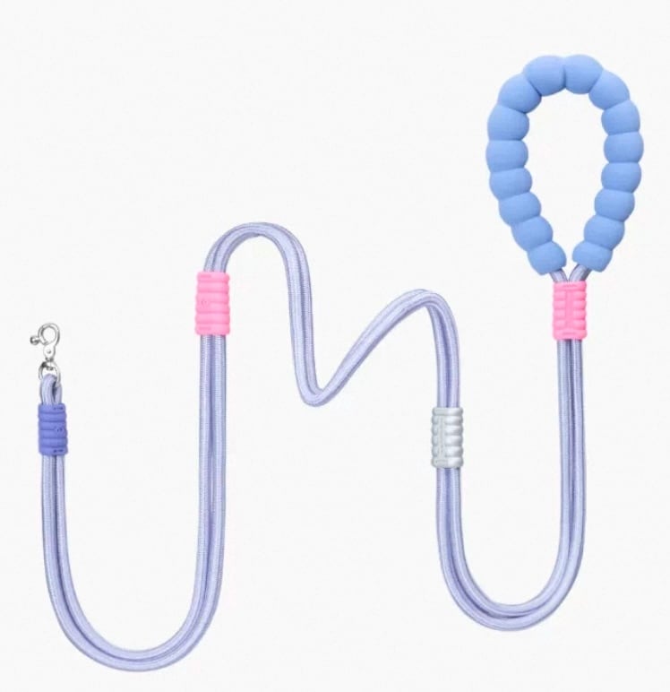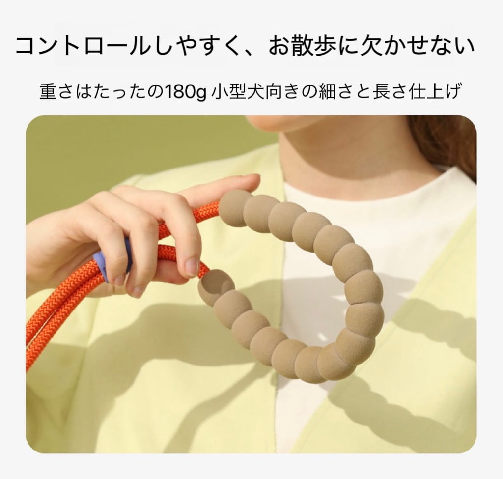 持ち手はマシュマロのぷにっとした手触りでやわらかく、飼い主さんの手が痛くなりにくい。夏などの薄着の季節は肩掛けしても肩に食い込みにくい可愛くて優しいデザイン。