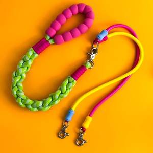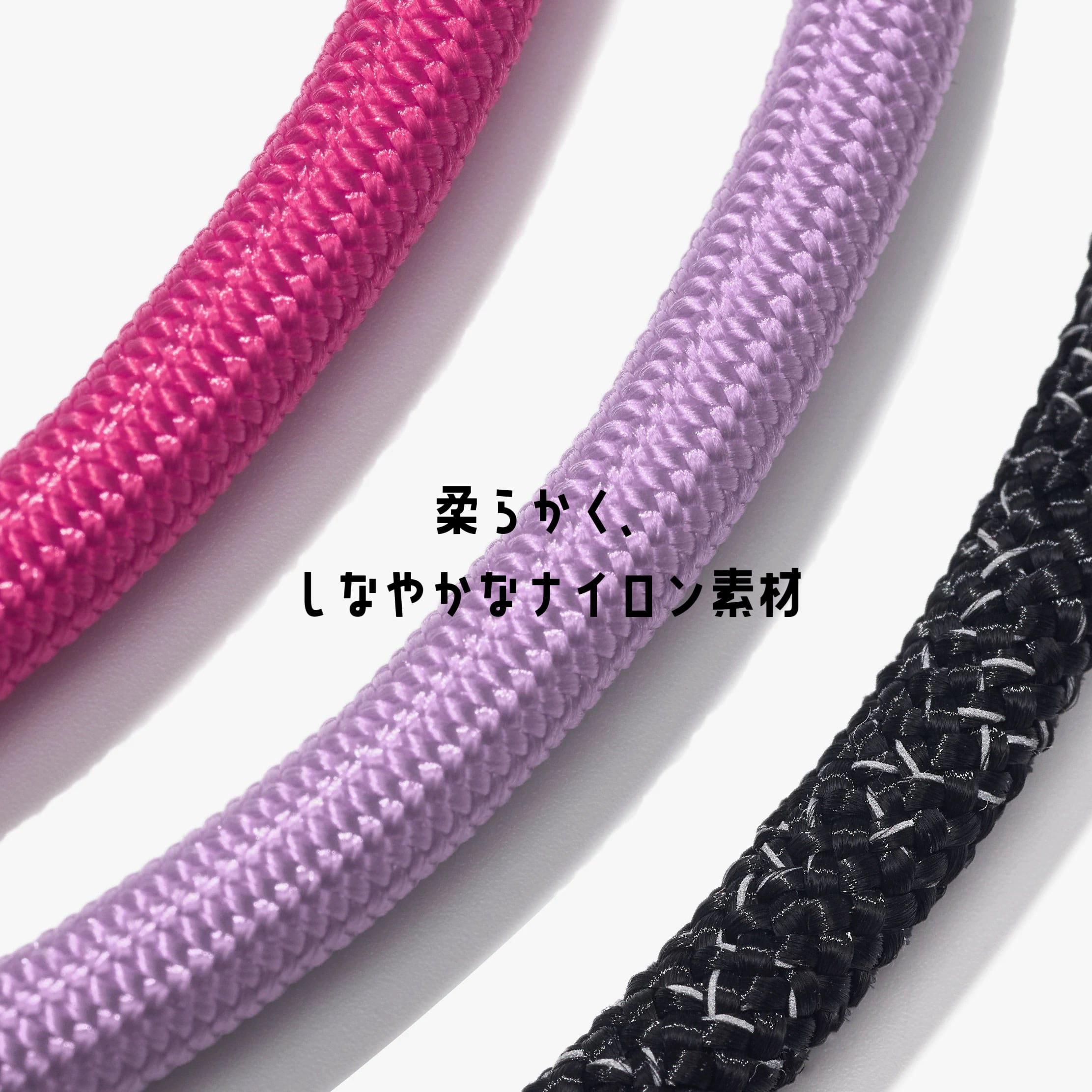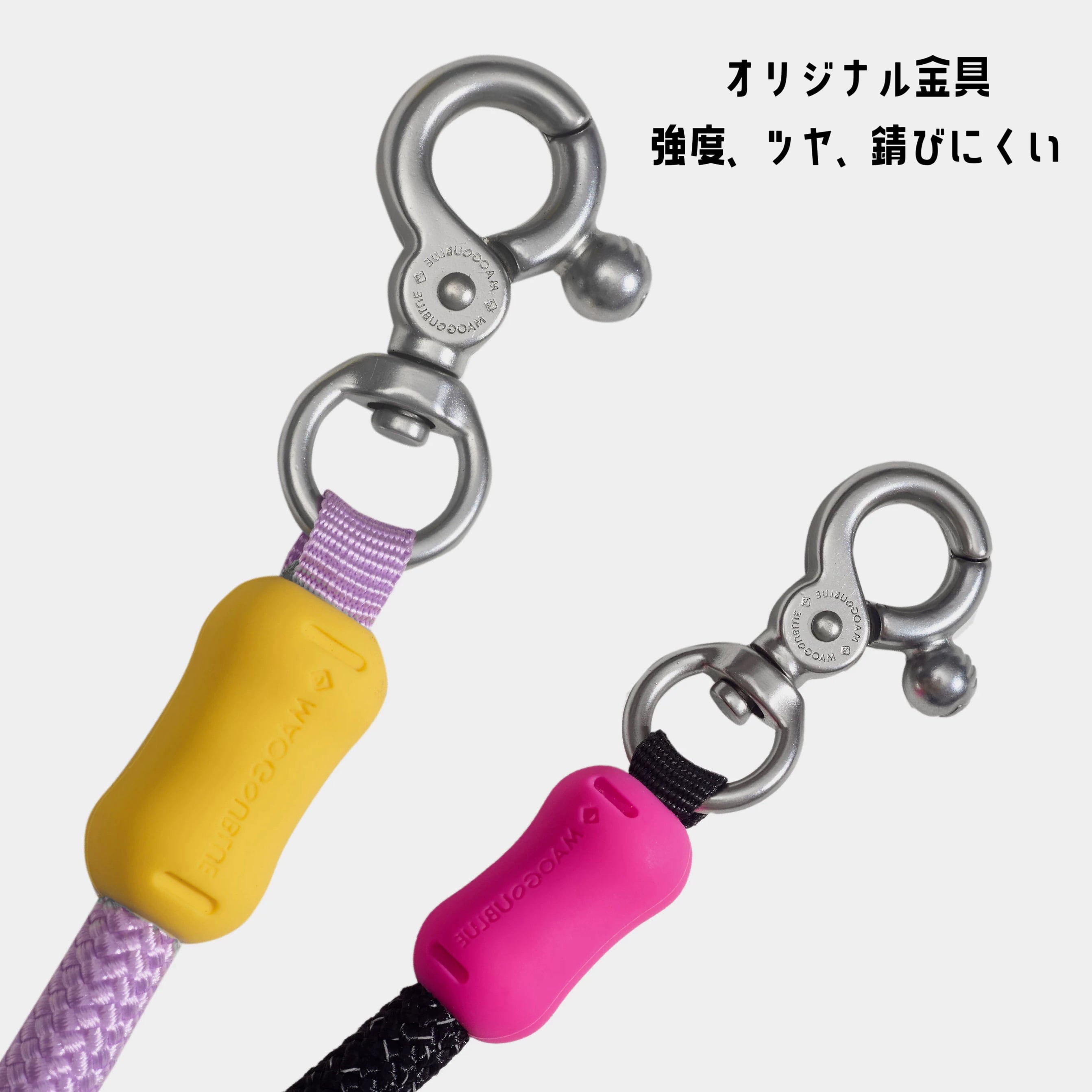 カラフルな色展開は他にはない魅力で、街中でも目を引くこと間違いなし。特に黒いリードには反射糸が練り込まれているため、夜の散歩でも安心です。また、マシュマロリードと合わせれば、その可愛さが倍増します!マシュマロリードは金具が360度回転するため、絡まりにくく、使い勝手も抜群です。
