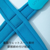 また、ちょうど腹部にあたる部分の裏地素材はクッション性、柔軟性に優れたウェットスーツ素材を使用しているため、体にフィットしながら肌との摩擦を軽減、引っ張り癖のある子や気道の弱い子にお勧め!