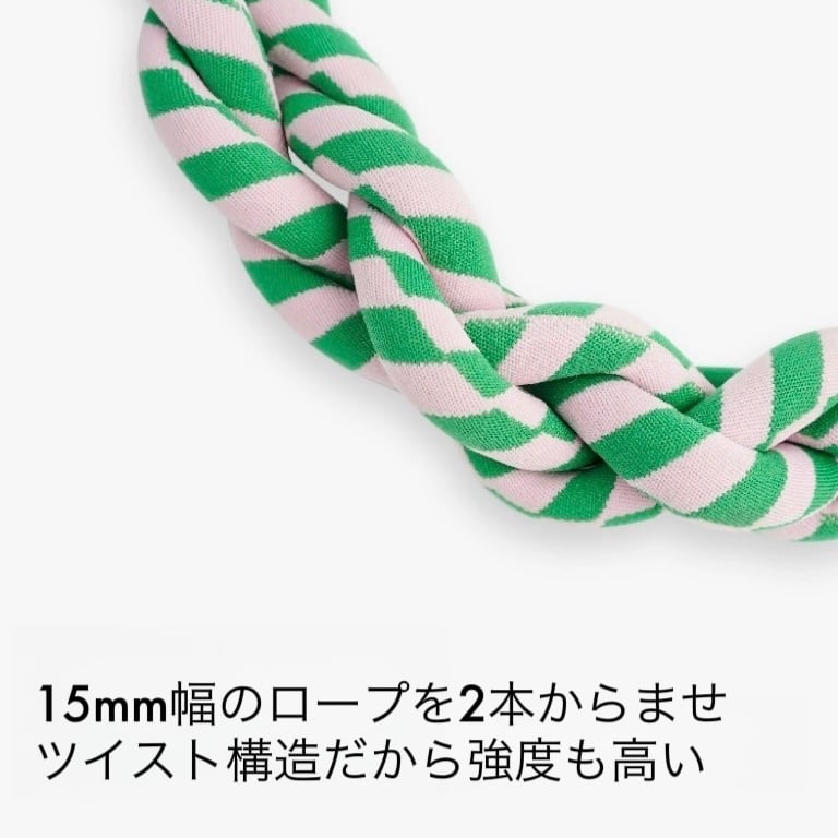 最大な特徴はねじねじデザイン!強度が向上するだけでなく、ボーダー柄をより可愛く見せています。